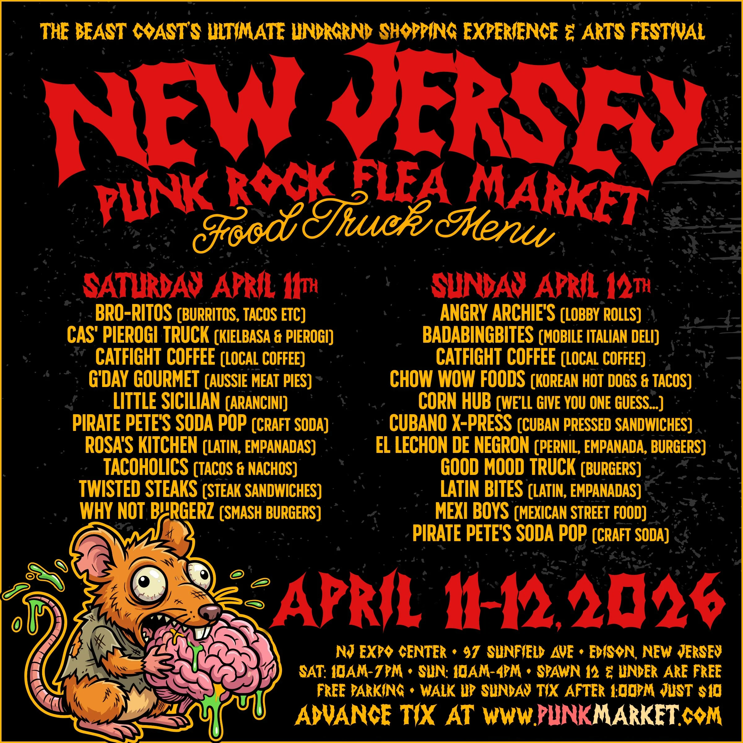 The New Jersey Punk Rock Flea Market is the Beast Coast’s raddest marketplace and the Ultimate Undrgrnd Shopping Experience & Arts Festival for DIY makers, artists, vintage vultures, vinyl slingers, oddity dealers, food fiends, and alt-culture weirdos of every flavor. Since 2013, we’ve packed our events with 100’s of small businesses, food trucks, live music & performances, celebrity guests, tattooing, body piercing, hearse car shows and a whole lotta Jersey attitude. Shop small, get weird, and join the chaos.